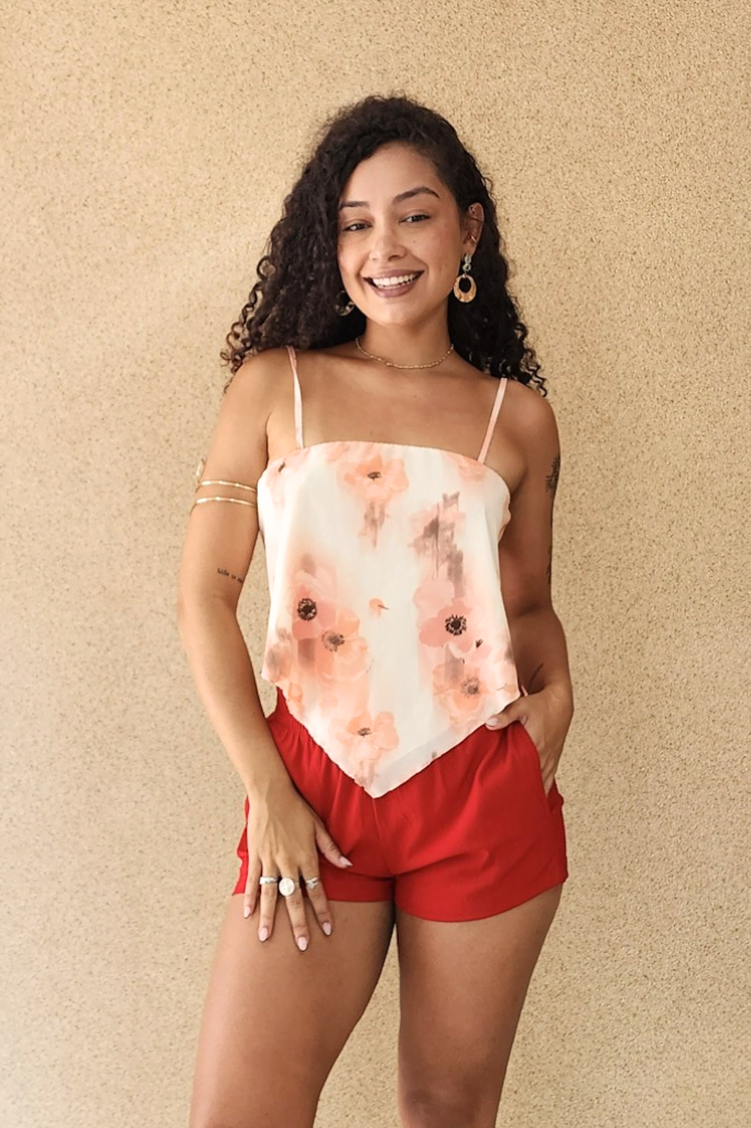 Confeccionada em sedinha com elastano, tem toque super suave, caimento leve e fresquinho, garantindo conforto o dia todo. Aaah, e claro: a peça é forrada, trazendo mais segurança e aquele acabamento impecável que a gente ama.