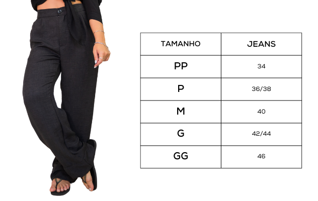 A modelagem é reta, possui bolsinhos nas laterais, elástico na parte de trás pra trazer AQUELE conforto, zíper e botão! Se encaixa perfeitamente ao corpo. 🥹🥰